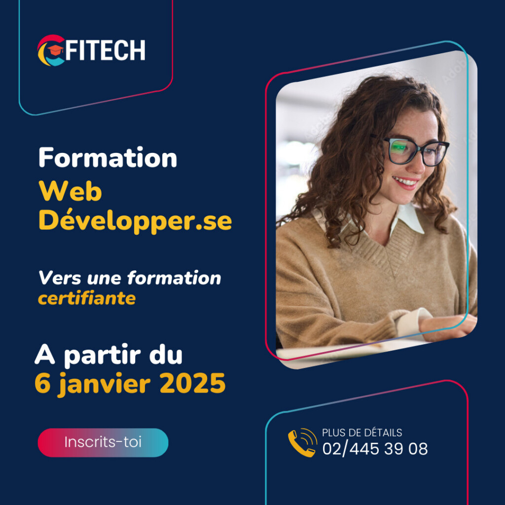 🚀 Deviens Web Développeur.se en 2025 ! 🚀 Tu as des connaissances en PHP, HTML, CSS, JavaScript et MySQL ? 🔥 Tu es demandeur(se) d’emploi, inscrit(e) à Actiris, disponible à temps plein, et tu as entre 18 et 45 ans ? C’est l’occasion rêvée de booster ta carrière ! Rejoins notre formation de Web Développeur.se qui débute le 6 janvier 2025 ! 💻 👉 Pendant cette formation, tu apprendras à maîtriser les technologies du web, à créer des sites et applications, et à intégrer des solutions de développement modernes pour des projets concrets. ✅ Pré-requis : -Connaissances de base en PHP, HTML, CSS, JavaScript et MySQL. -Être demandeur(se) d’emploi et inscrit(e) à Actiris. -Disponibilité à temps plein. 🎯 Prêt(e) à relever le défi et à donner un nouveau tournant à ta carrière ? 📅 Inscris-toi dès maintenant sur notre site et découvre toutes les infos : www.cfitech.be/formation_longue/developpeur/ #WebDeveloper #Formation #Developpeur #PHP #HTML #CSS #JavaScript #MySQL #Actiris #ReconversionProfessionnelle #FuturDeLaTech #CarrièreDigitale